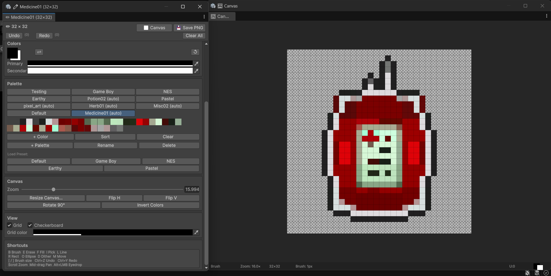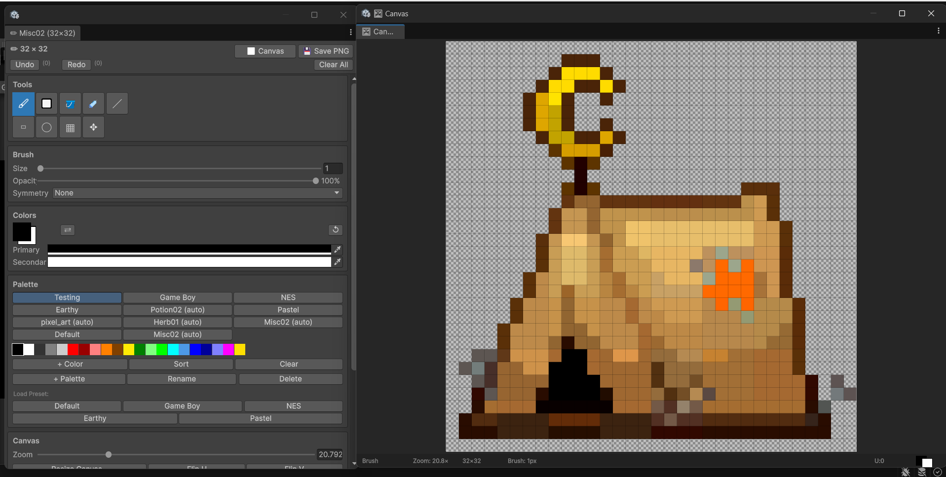 🖌 Brush (B) - Paint pixels using primary color (right-click = secondary